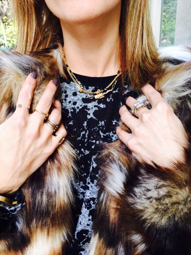 Me encantan los detalles, no puedo salir de casa sin mis pequeños tesoros 🙂 Las gargantillas son de La Morenita, los anillos de la mano derecha son todos de Asos, menos los tres sencillos que son de la diseñadora Sira Ryf. En la mano izquierda llevo anillos vintage. El reloj es de C21.